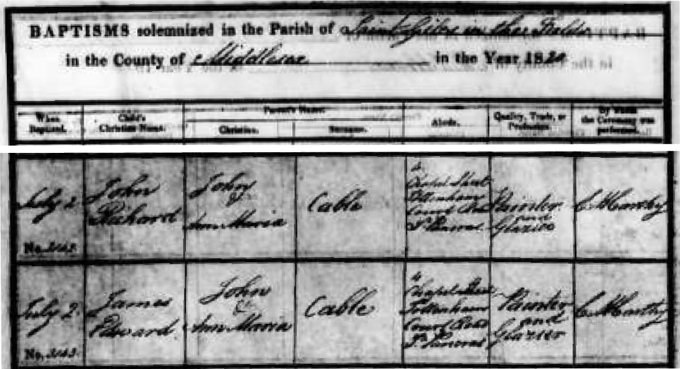 1820 – BIRTHS: JOHN RICHARD & JAMES EDWARD CABLE